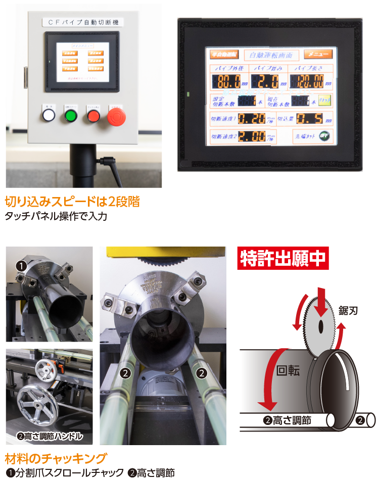 「2 段階設定」切り込みスピードだから、切断面の内バリ、 表面のバリを抑えます。