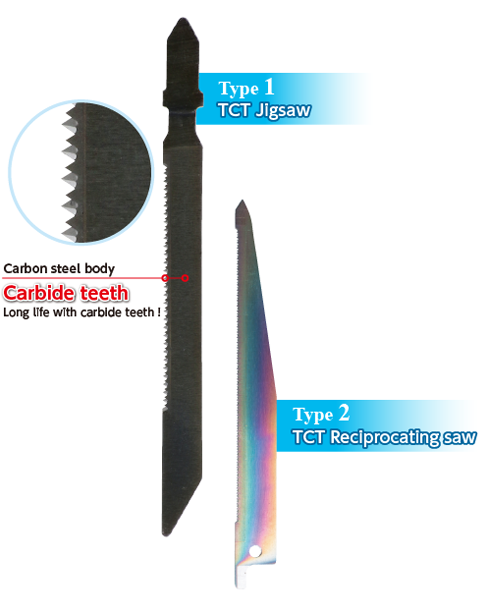 Newly adopted carbide teeth enable the long cutting life ! Finely chamfered teeth enable the fine cut-surface without